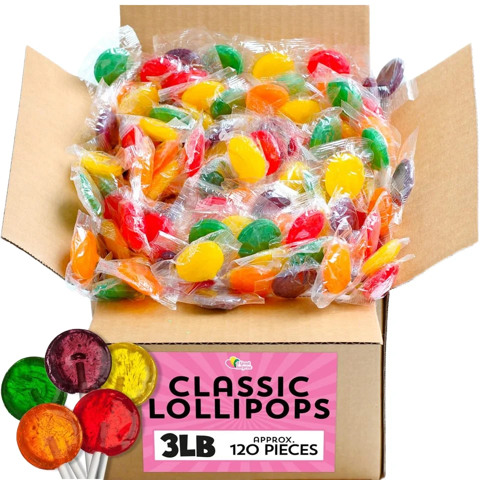 Classic 3-Pound Summer Lollipops Individually Wrapped Flat Suckers Fruity Hard Block for Kids Doctors Office Schools Banks
